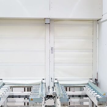 Im Einsatz schaffen unsere Tore Arbeitsleistungen von 2 Schichten / 6 Tage / 300 Tage im Minutentakt öffnen und schließen. Dieses Schnelllauftor wird zumeist mit verlängerten Seitenteilen geliefert, die für einen "sicheren Stand" des Tores sorgen. Der Behang schließt mit die vorhandene Förderanlage ab.